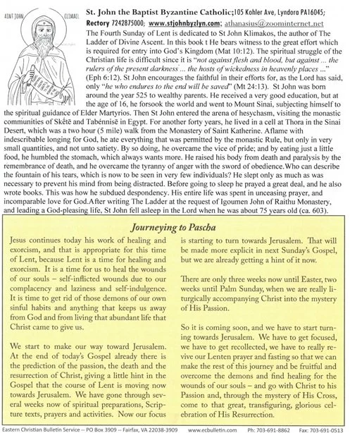 Fourth Sunday of the Great Fast Sunday of John Climacus