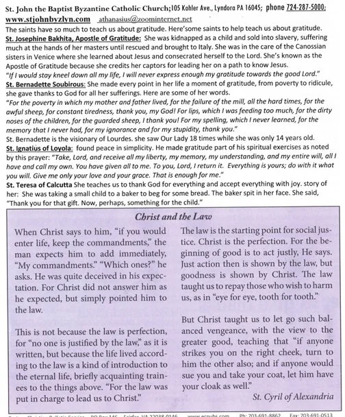 Diaconal Ordination Celebration: There will a celebration of diaconal ordination on November 30th at 3:00pm. Prior registration required. Donations of deserts will be needed for this dinner and a sigmup sheet for this may also be found on the bulletin board. Thank you!