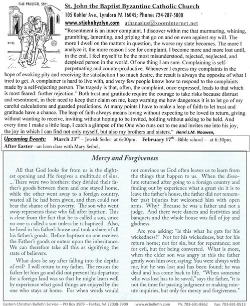 34th Sunday After Pentacost Sunday of the Prodigal Son